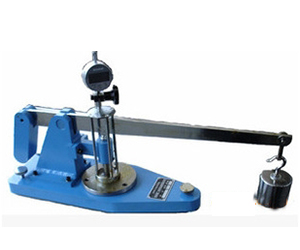 本儀器主要有數字顯示表、測桿、基準板、壓腳與加重砝碼、杠桿配重平衡塊。工作時,把試樣放置在基準板上,另一與基準板平行的圓形壓腳對試樣施加規定的壓力,以二塊板之間的垂直距離作為試樣厚度的測量值。